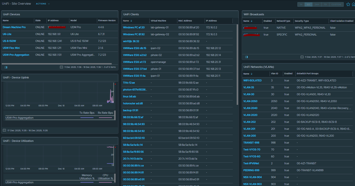 There’s also non-interactive widgets on the right to display the configured WiFi SSIDs and UniFi Networks, which are mapped to your vDS Port Group names in vSphere.